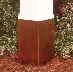 Cedar lanternposts are 6 1/4" square, and 8 feet long with traditional edge chamfering. Our laminated northern white cedar lanternpost is an engineering marvel that resists warping, twisting and checking commonly found with solid core cedar posts. Each post is planed, filled and sanded smooth, enrobed with two coats of oil base primer to lock the natural protective tannin inside the post and provide excellent surface adhesion for two coats of acrylic latex stain, handpainted for an authentic brush texture . Lanternpost caps with classic Roman ogee moldings are made of red cedar, constructed with stainless steel corner clips, waterproof glue and stainless fasteners. Caps are finished with two coats of primer and two coats of acrylic latex stain. Topmount lanternpost caps have a "rust free" 3" universal aluminum fixture mounting coupler providing a solid mount for most fixtures. To provide maximum support for the fixture, caps are glued to the post and 4" fastening screws are driven through the aluminum coupler, through the cap, and deep into the cedar lantern post. Finally, our cedar lanternposts are protected from wood rot with Post Seal, an impermeable membrane encasing the post below ground level adding decades of life to your Yankee Lanternpost.